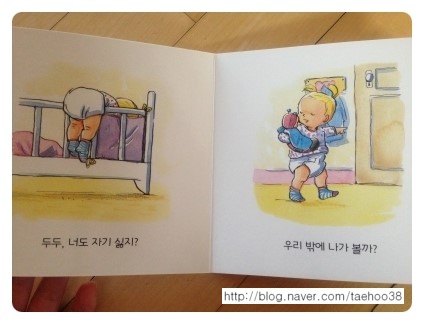 자기 싫어하며 친구인 인형 두두에게 나가자 합니다..