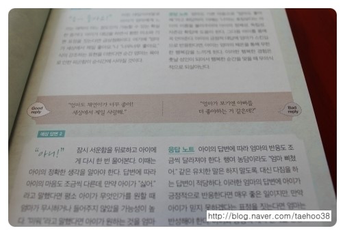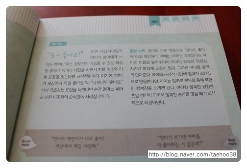 거기에 따라 엄마의 좋은 답과 나쁜 답 그리고 예상 답변을 달고