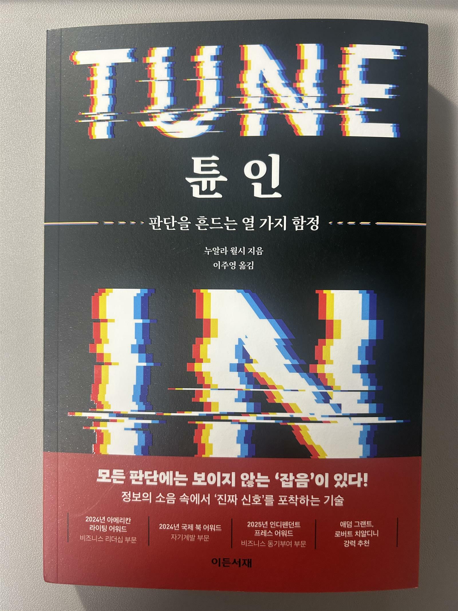 책 <튠 인>은 우리가 판단을 할 때 흔들리는 함정들에 대하여 이야기하고, 그 함정들을 어떻게 극복할 수 있을지에 대하여 다루고 있다. 책은 우리가 먼저 왜 잘못된 판단들을 하는지에 대하여 다루고 있다. 그리고 그 판단들에 대하여 권력, 자아, 위험, 정체성, 기억, 윤리, 시간, 감정, 관계, 이야기라는 10가지 판단 기준에 대하여 이야기한다. 그리고 우리가 합리적인 의사결정을 하기 위하여 필요한 능력에 대하여 다루고 있다.