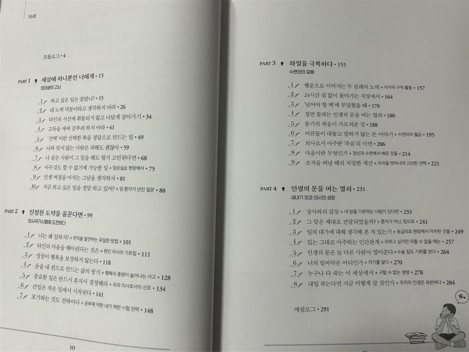 우리는 모두 단 한번의 삶을 살아간다. 그렇기 때문에 우리의 삶은 언제나 선택의 연속이며, 지난 날을 뒤돌아보면 후회도 많이 남는다. 그리고 그 후회의 시간에 대하여 상대방에게 알려주고 싶은 마음이 든다. 특히 자신의 자녀라면 자신의 경험 속에서 자신과 같은 후회를 하지 않거나 행복을 느낄 수 있도록 만들어주고 싶어한다. 이 책은 외과의사로서 자신의 삶에 대하여 자녀에게 알려준다. 의사로서의 삶은 어떠한지, 그리고 그 과정에서 무엇을 느낄 수 있을지 알려준다는 점에서 의미가 있었다.