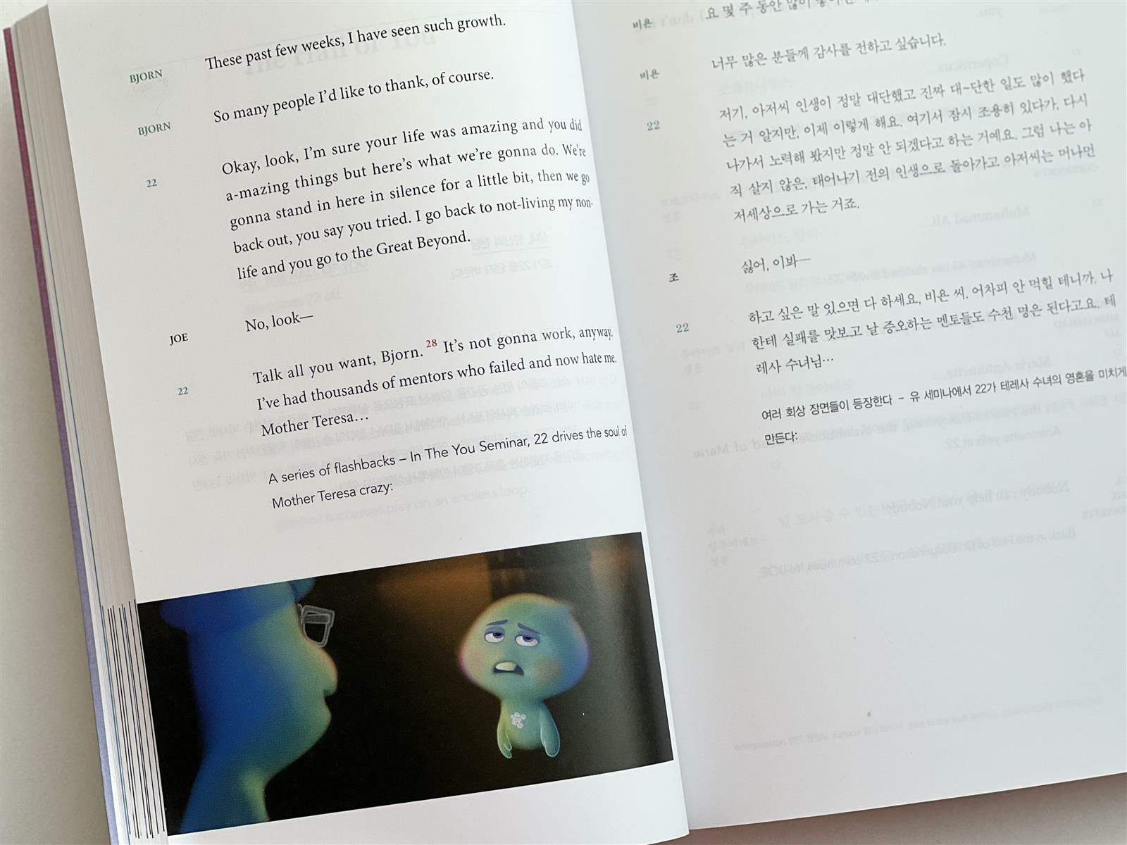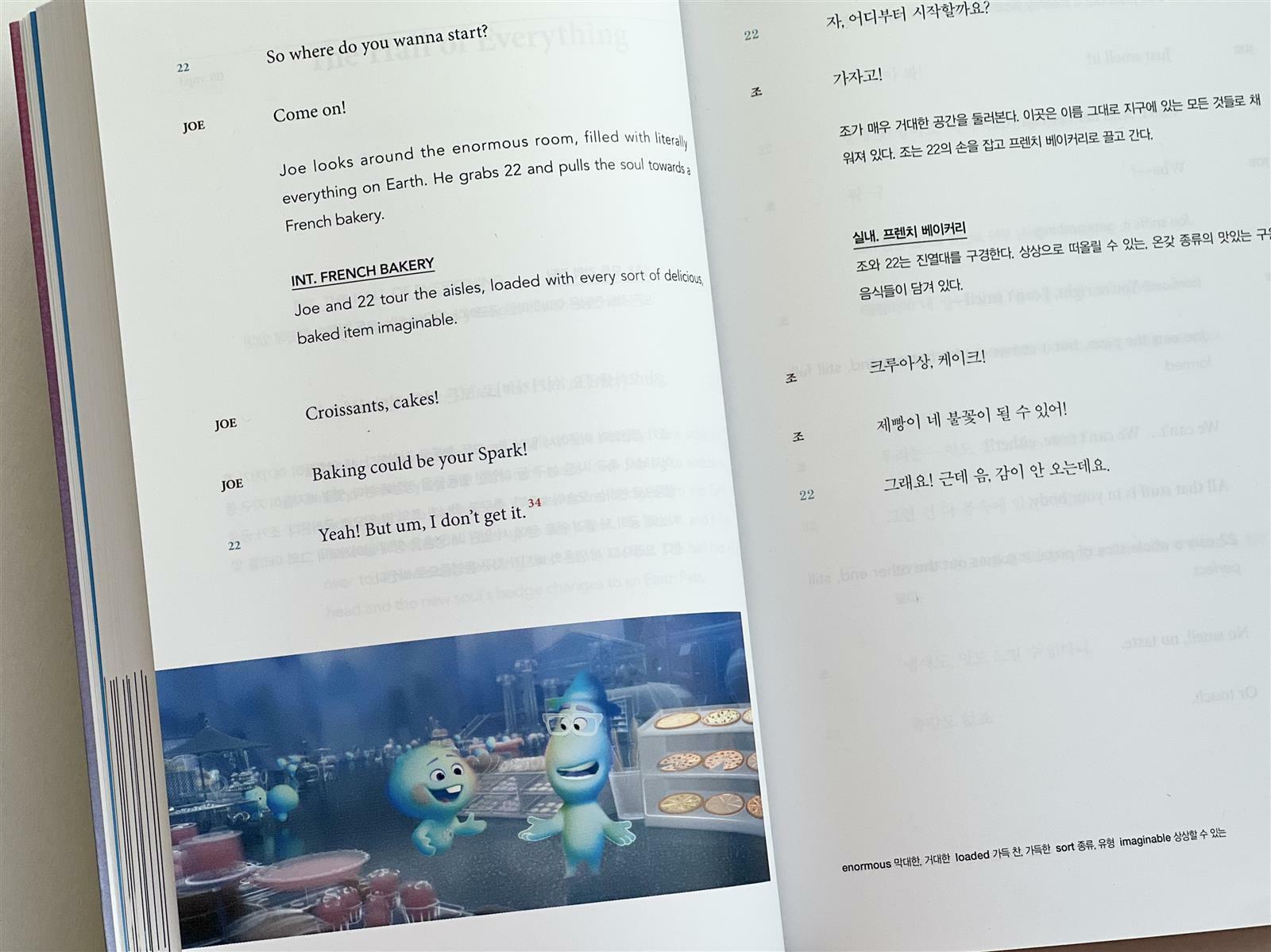 디즈니와 픽사 애니메이션 중 최고의 작품만을 선별하여 전체 대본을 제공하는 '디즈니, 픽사 베스트 컬렉션 시리즈' 신작은 영화 <소울>이다. 국내 유일 <소울>의 전체 대본을 담은 스크립트북으로 영어 공부를 할 수 있다고 해서 매우 기대하며 읽었다. <소울> 영화를 매우 재미있게 보았기에, 영화의 감동을 고스란히 되새기면서 영어 표현들도 익힐 수 있을테니 말이다.