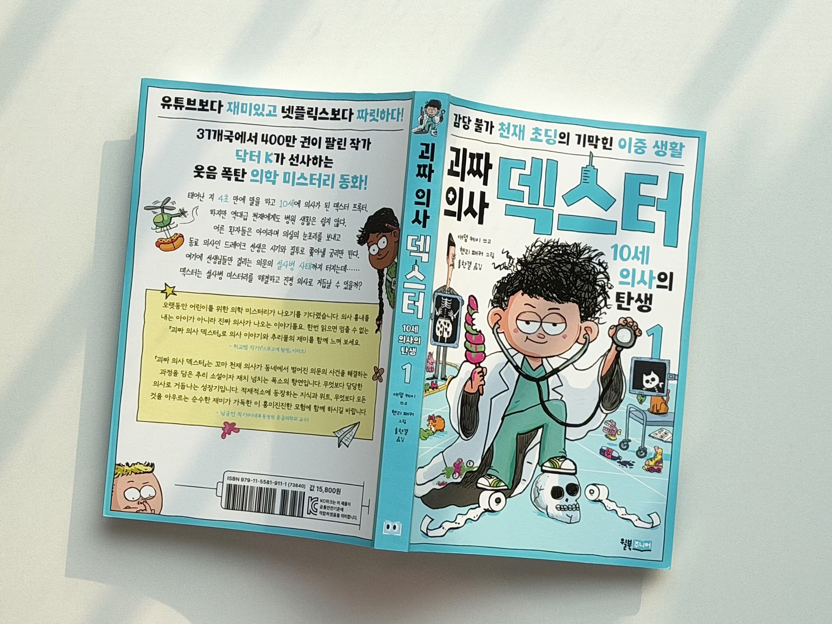 닥터 K 시리즈의 애덤 케이와 헨리 파커 콤비가 돌아왔다. 닥터 K 시리즈는 <닥터 K의 이상한 해부학 실험실>, <닥터 K의 오싹한 의학 미스터리>, <닥터 K 역대급 발명왕>, <닥터 K의 찐천재 실험실> 등 국내에 많은 작품들이 출간되어 있다. 의사 출신인데 코미디언이 직업인 애덤 케이가 글을 쓰고, 코미디언인데 그림까지 잘 그리는 헬리 패커가 일러스트를 그렸다. 이번에 나온 신작은 새로운 시리즈로 '의학 미스터리 동화'이다. 무려 10세에 의시가 된 주인공이 등장하는데, 정말 재미있다.