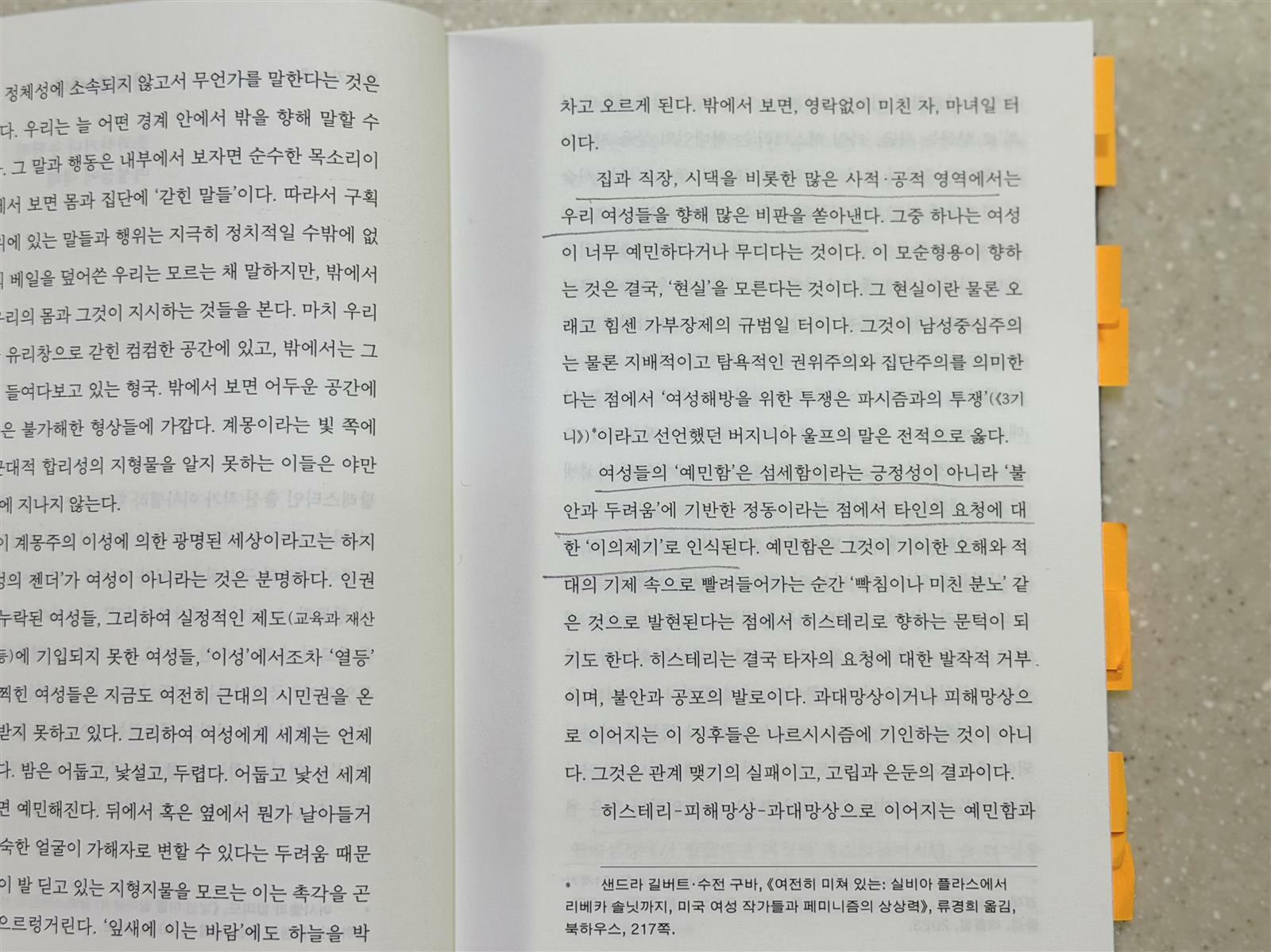 이 책은 직접적으로는 2016년 강남역 사건, 미투운동의 연속선상에서 발굴해낸 여성의 목소리들이지만, 좀 더 심층적으로는 겨우 이만큼의 자리조차도 허락받지 못했던 여성들에 대한 커다란 부채감에서 기획되었다. 이 책에 수록된 20편의 글 중 일부는 '근대 합리성의 젠더성을 묻다'라는 주제로 열렸던 학술포럼에서 발표된 글이다. 포럼에서 발표된 글들을 축약한 네 편 외에 해당 주제와 관련해 여성 평론가들의 에세이를 모은 것이다. 시, 소설, 드라마, 여성 현실에 대한 비평가들의 실존적 목소리를 한꺼번에 만날 수 만날 수 있다는 것도 매우 의미있는 시간이었다.
