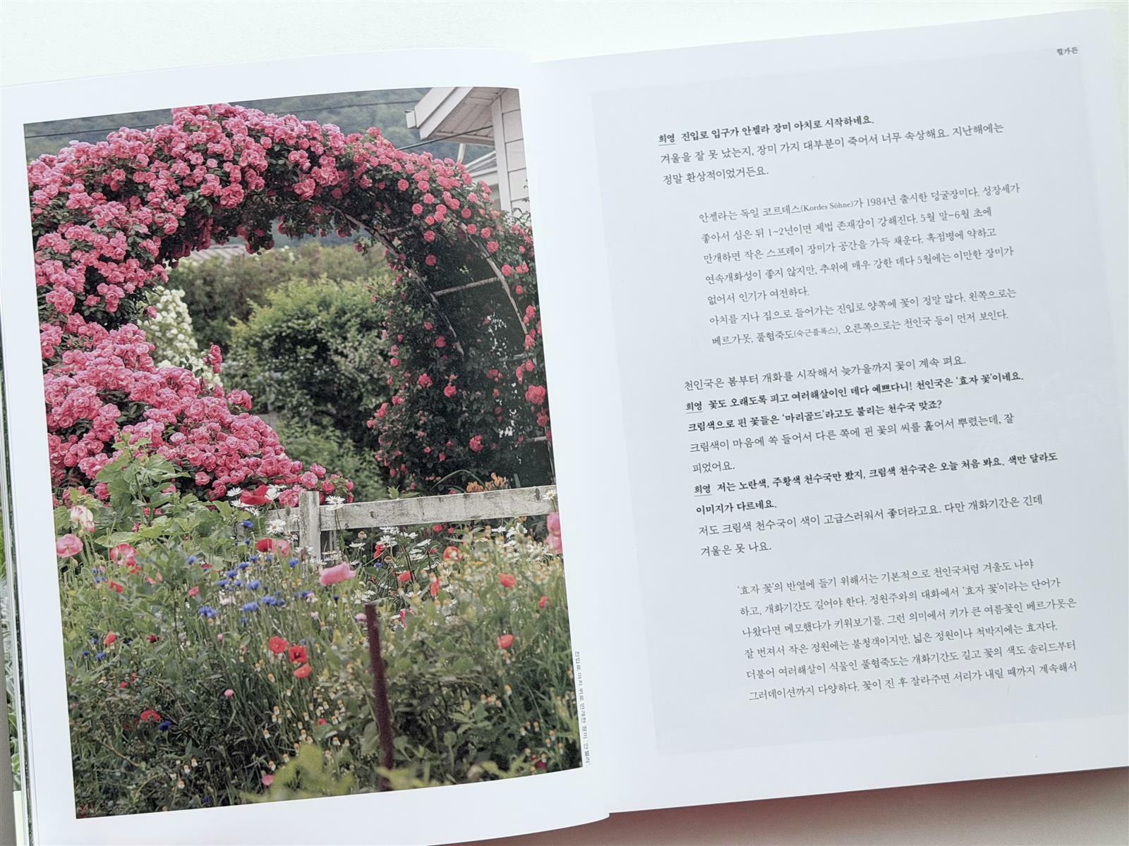 이 책에는 다양하고 아름다운 꽃들이 가득한 힐가든, 틀밥을 만들고 온실을 직접 조립하며 가꾸고 있는 초록가든, 남편이 직접 설계한 집에서 나무 옆으로 오두막을 짓고, 장미를 가득 모은 우드베일리가든, 깊은 산속에 자리한 동화 같은 산속 정원 홀리가든, 주말이면 3대가 모여 정원을 가꾸는 헤이데이가든, 멸종위기 식물들이 사는 산처럼 드넓은 솔매음정원 등 위치도 다르고, 취향도 다른 정원들이 16곳이 담겨 있다.