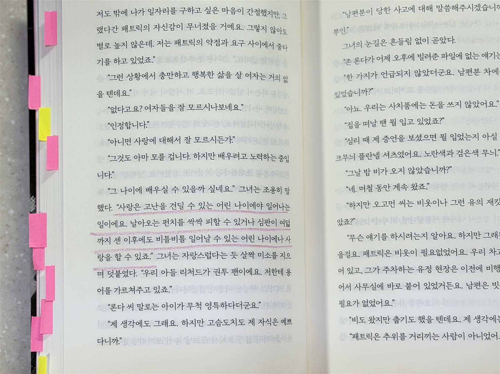 또 한 번의 비명. 처음보다 더 격렬한 이 비명은 불의한 일에 분노한 아이의 울음 같았다. 분노는 오해일 리가 없었지만, 퀸은 그 감정이 이런 질문을 하는 자신을 향한 것인지, 아니면 배신을 한 살인자를 향한 것인지, 아니면 제삼자를 향한 것인지는 확실히 알 수가 없었다. p.372
