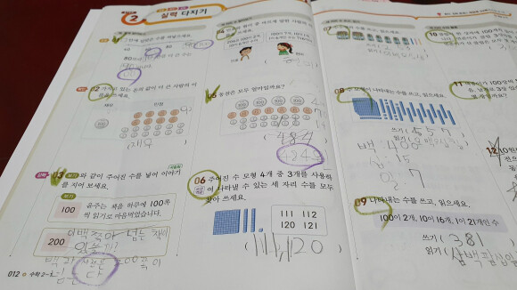 "초2언니들은 이런 문제를 기본을 풀어내고 있어~, 초1은 학교가 재미있으라고 쉬운 문제들만 내주는것이고~"