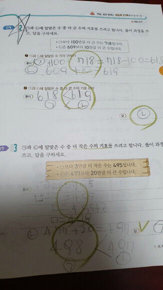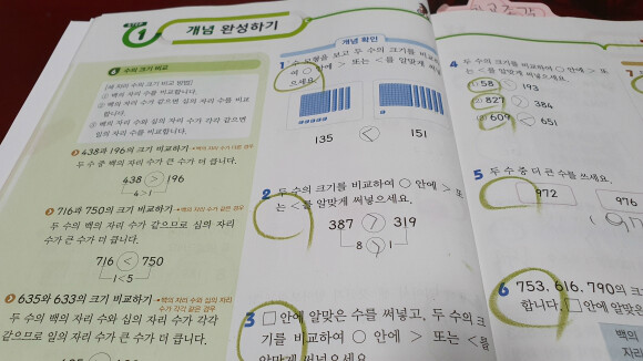 큐브수학 S 초등 2-1에서 부등호가 본격적으로 나오기 시작합니다.