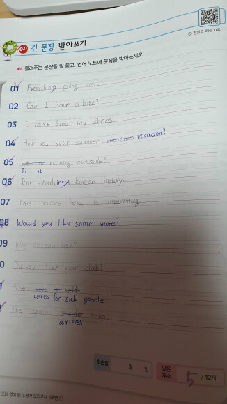 지난해 7월경 타출판사의 영어듣기평가문제를 풀이한 후 큰 충격에서 꾸꿍~하하하하하