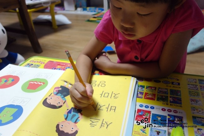 글씨도 큼지막하고 교재 안에 글씨도 시원하니 커서 아이가 쉽게 느껴진 모양이예요~^^