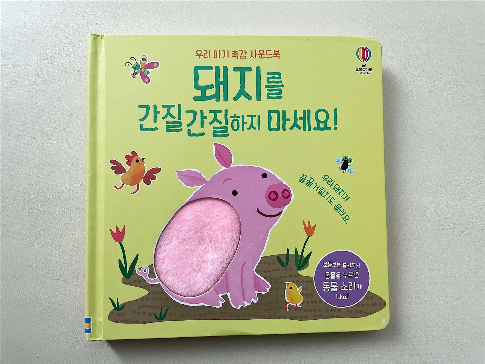반면, 어스본 돼지를 간질간질하지 마세요! 이 책은 살살 문질러도 동물 소리가 잘 나서 정말 좋았어요! 넘 귀여운 돼지그림, 보들보들한 털 느낌은 더더욱 좋구요 ! :)