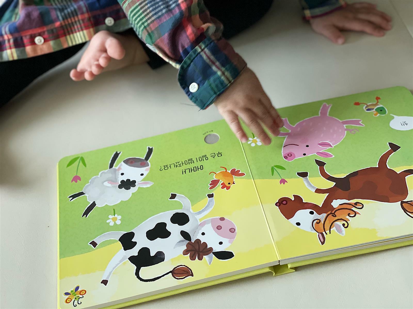 너무 귀엽게도 잘 갖고 놀고 있는 우리 아들, 이제 21개월인 아이인데 소리도 따라하고 노래가 나오면 춤도 덩실덩실 추고 즐거워해요 - 동물 소리도 우렁차고 커서 넘 좋고 부드러운 촉감들을 통해 언어의 확장도 있을 수 있어서 정말 좋은 책인 것 같아요.
