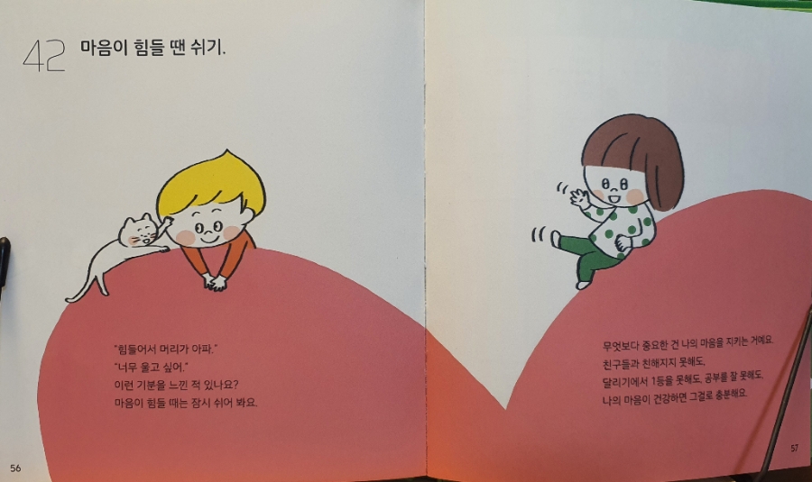 어릴때부터 마음이 힘들때는 쉬는거라고 알게 되면 자신의 마음을 잘 조절하는 아이로 클 수 있을것같아요.^^