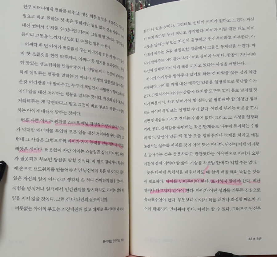 양육서를 읽으면 읽을수록 아이를 키우는 일은 고귀하고, 많은 인내와 뼈를 깎는 고통도 동반한다는 생각이 들어요.