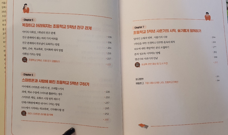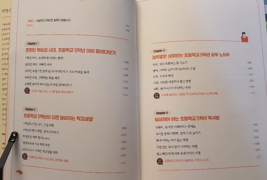 아이가 슬기롭게 초등 5학년 생활을 할 수 있는 팁과 어떤 부모님이 되면 좋을지에 대한 정보가 가득해요. 초등 5학년 생활이라면 이 한 권만 잘 읽고 실천해도 되겠다는 생각이 들 정도였어요.