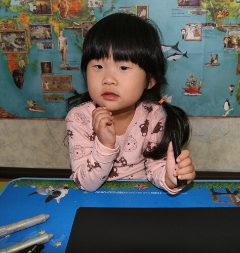 아이는 벽에 붙여진 그림을 자주 보면서 명화에 대해 조금씩 알아가고 있어요.