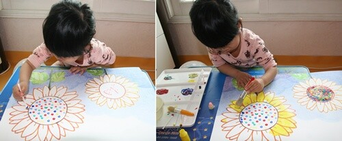해바라기에 점을 찍어 해바라기의 씨도 표현해 봤어요.