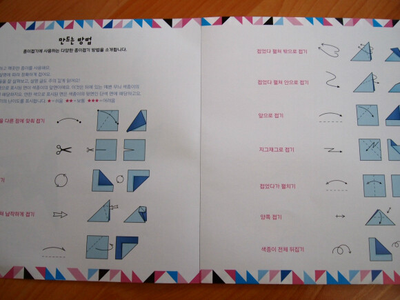 종이접기 앞 부분은 접기의 기본이 나와 있어요.