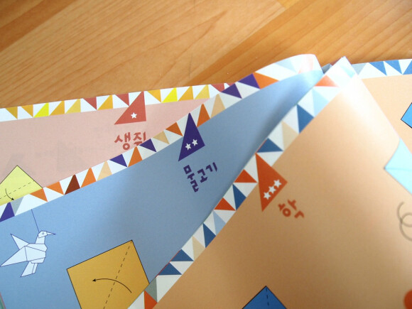 우리가 늘 보아왔던 색종이의 크기보다 조금 더 크며 다양한 그림들이 있어