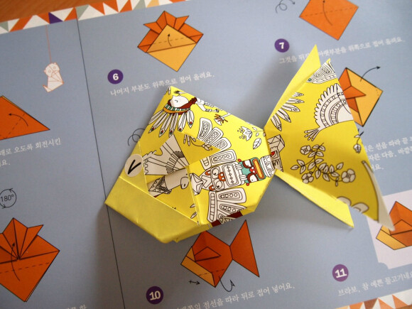 별 두 개의 물고기 접기에 나섰어요. 눈 스티커 찾아다 눈에