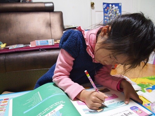 혼자서 풀기도 하고 헷갈리는 단어는 엄마에게 물어보고