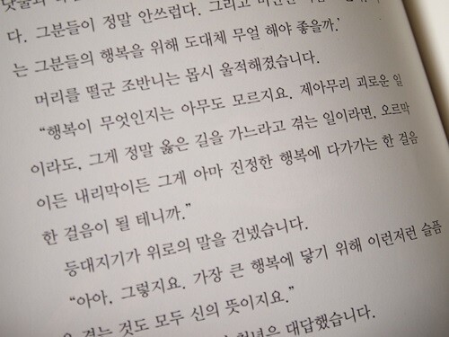 " 행복이 무엇인지는 아무도 모르지요. 제아무리 괴로운 일이랃, 그게 정말 옳은 길을