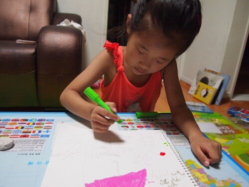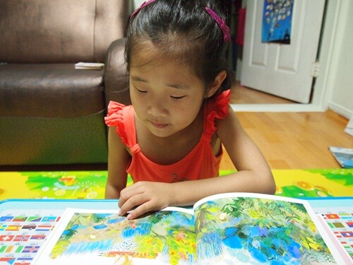 엄마와 함께 그림을 그리고 색칠을 하고 책의 제목도 적고 글과