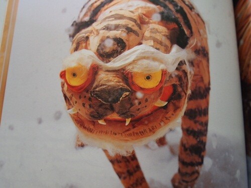 평면적인 그림이 아니라 닥종이로 입체적인 할머니의 모습과 호랑이,