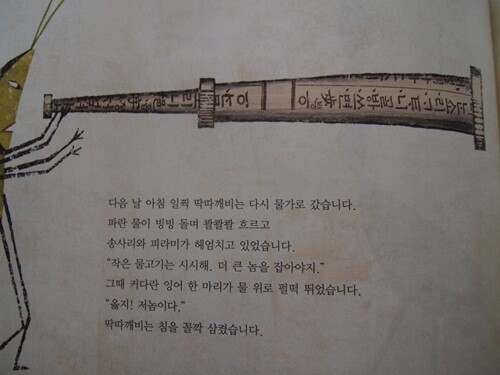 딱따개비는 망원경을 가지고 잉어의 모습을 관찰하고 있는데요.