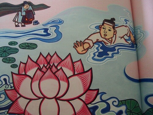 원님과 함께 살고 있어요. 그러던 중 연꽃을 발견한 원님은 콩중이의