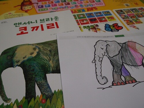 자유롭게 그리고 중간중간 코끼리의 무늬도 넣어가면서 칠을 하더라구요.그만큼 아이의 생각이 자유로워진 것 같아요.