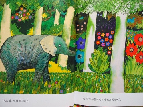 호기심많은 코끼리는 숲 속에 무엇이 있는지 궁금했어요.