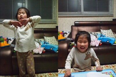처음엔 힘들어하더니 좀 컸다고 요즘엔 혼자 하는 게 부쩍 늘었어요.