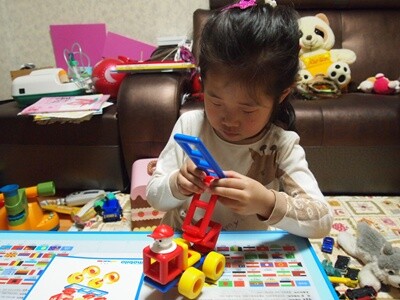 교구를 이용해서 소방차와 또 다른 자동차를 만들어봐요.