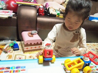 색깔별로 나누어서는 이건 소방차, 이건 경찰차하며 말하네요.