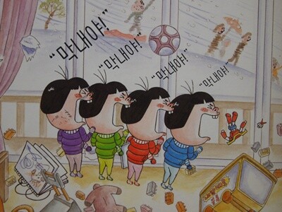 표지에 등장하는 노란 옷을 좋아하는 아이는 막내랍니다.