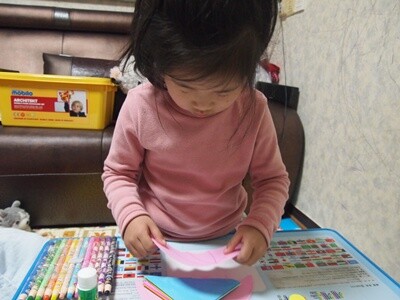 보라, 파랑, 빨강, 노랑, 초록 다섯가지 색종이를 준비해서
