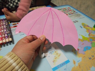 아쉽게도 집에 막내기가 없어서 종이를 잘라 붙였더니 우산 손잡이가 힘이 없어 축하고 쓰러지네요.