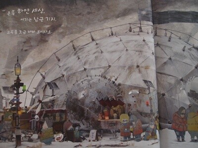 눈보라가 거세어지면서 썰매 아저씨의 모습이 희미해져갑니다.