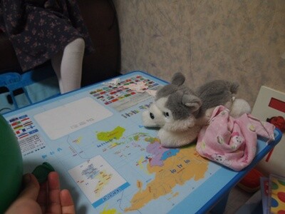 든솔이가 아끼는 인형과 손수건을 두고 어느 것이 더 멀리 날아가는지도 알아보아요.