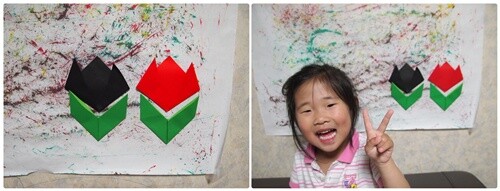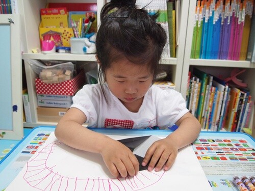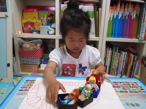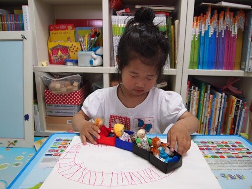그리하여 기찻길을 그리고 색종이로 상자를 접어 연결해서 친구들을 태워주었어요.