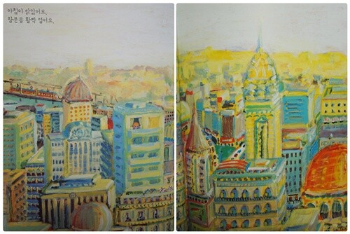 아침에 창문을 열면에서 보여주는 그림은 풍경이 주가 되는 그림이랍니다.