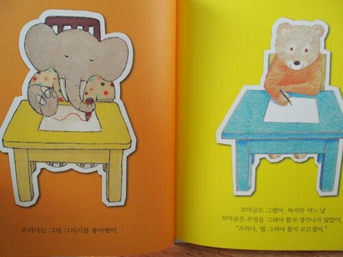 프리다는 금세 그림을 그리지만 꼬마곰은 그림그리기가 쉽지 않나봐요.