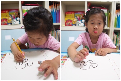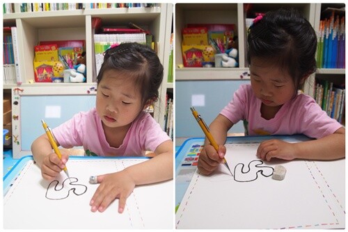모양을 보고 어떤 모양이 생각나는지는 금방 대답하는데..생각나는 그림을 그려보는게 아직은 쉽지 않나봐요.