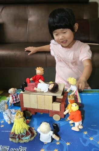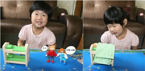 책놀이가 끝이 난후 지원이는 혼자서 역할 놀이를 또 했답니다.
