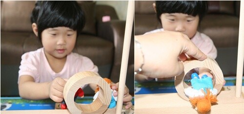 제자리에 멈춰서서 생각하고 도와주세요..라고 외치니 엄마가 지원이 인형의 목소리를 듣고 달려옵니다.