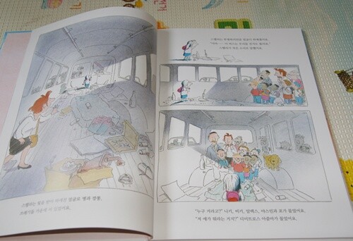 특히,막내 오리는 장난감 가게의 기차에 넋이 빠져 엄마 오리와 언니 오리들이 가 버린것을 모르게 된답니다.