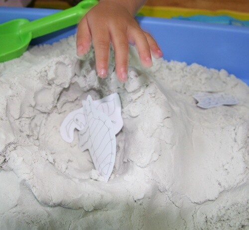 그런 다음 개미귀신을 위한 모래함정을 촉촉이 모래위에 만들어 표현했어요.