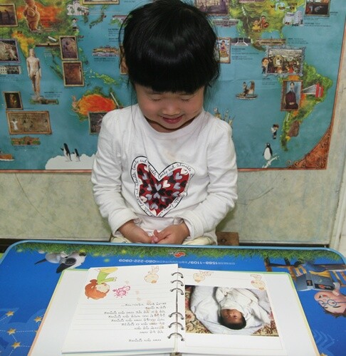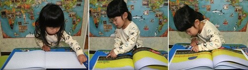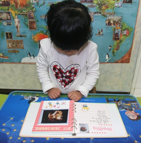 뱃속에 있을때의 초음파사진부터 어린시절 사진들을 쭉 보고 있어요.