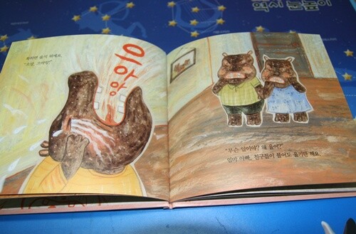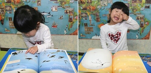 알속에 있는 아기펭귄에게 말을 건네며 서로 주고받으면서 전개됩니다.