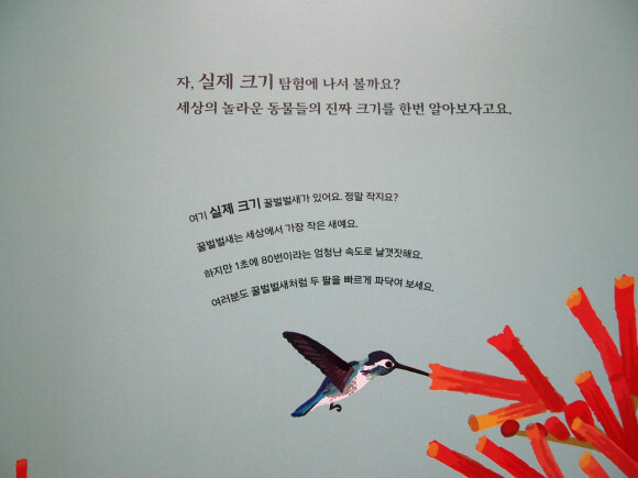 동물들의 실제 크기를 자신의 신체와 비교해 봄으로써 눈으로 보는 책의 역할에 체험하는